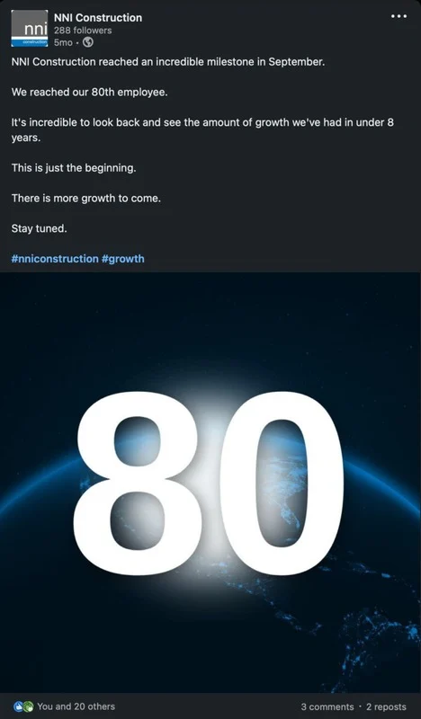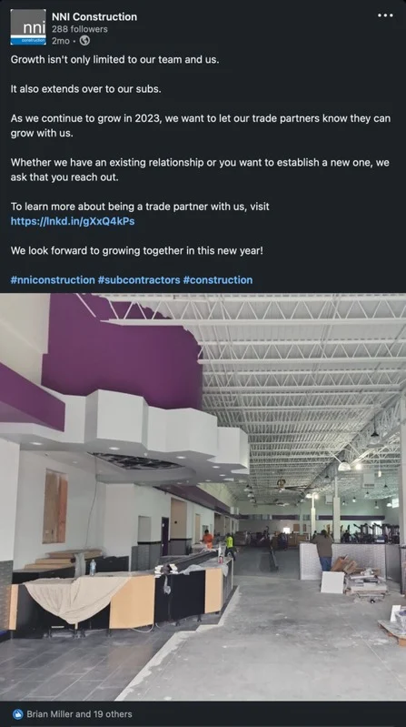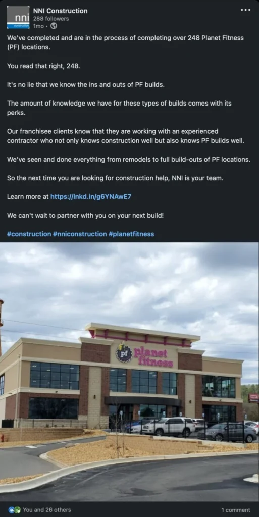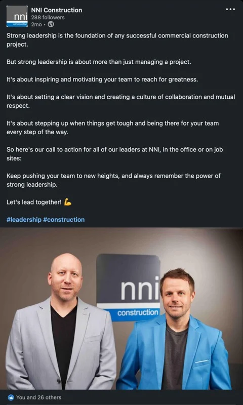 “Their structured approach to data gathering, consistent posting schedule, and clear communication make them stand out as true professionals in the commercial construction space. Forge has helped us share our message with clients while strengthening our brand presence and sense of pride across the entire company.”